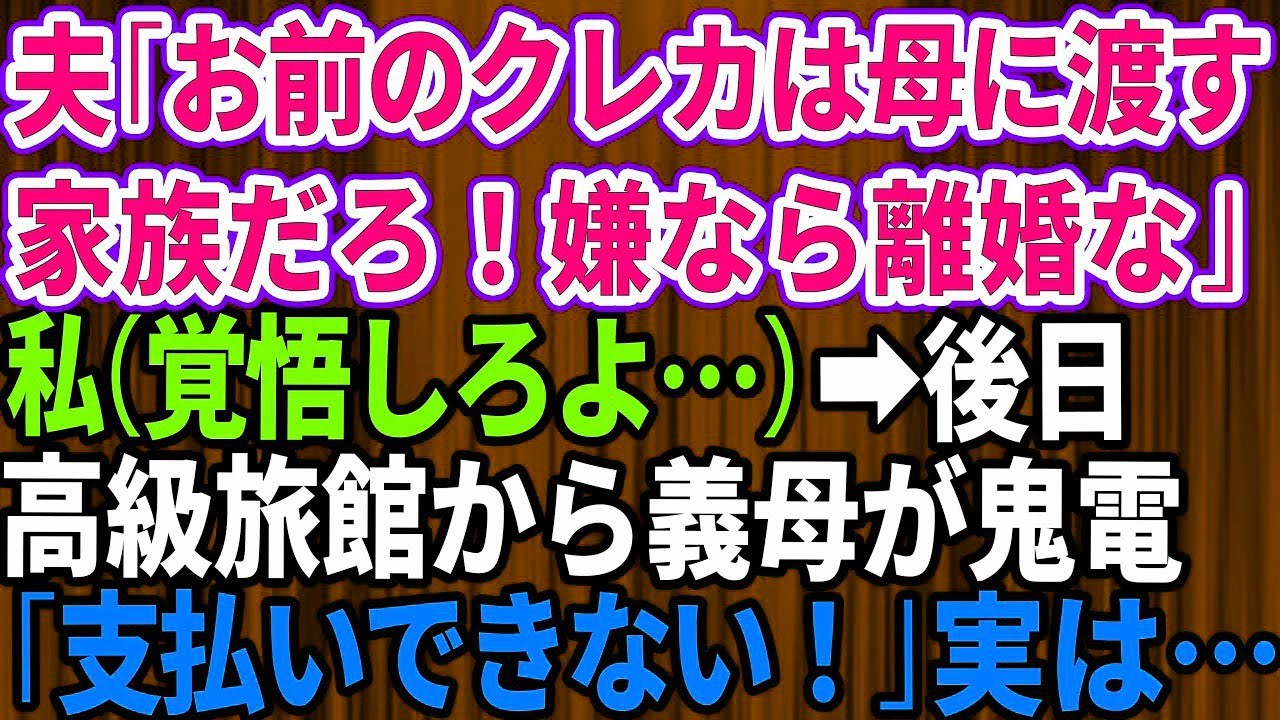 クレジットカード私のクレジットカードが消えた!?夫は「旅行に行った母さんに渡した」と言い放ち、私は即離婚届を提出…💔 その後、高級旅館に泊まった義母から慌てた連絡が!支払いができない!?😳✨