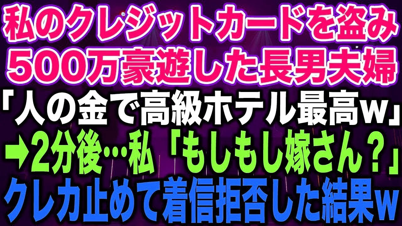クレジットカード長男夫婦が私のクレジットカードを盗んで、500万も豪遊したという信じられない事態に。高級ホテルで楽しんでいる最中、私はどんな方法で彼らに仕返しをしたのか?数分後、私の取った行動が彼らにどんな結果をもたらしたのかをお見逃しなく!クレジットカードを止めた後、長男夫婦の運命は一体どうなったのか…スカッとする結末をお楽しみください!