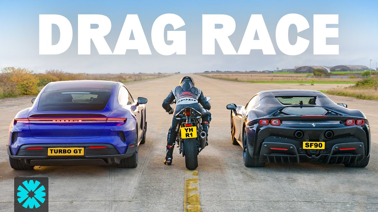 We’re going to drag race an ICE supercar against an EV supercar and a bike over the 1/4-mile from a standing start, a rolling race across the 1/2-mile, and a brake test. Let’s meet the contenders…