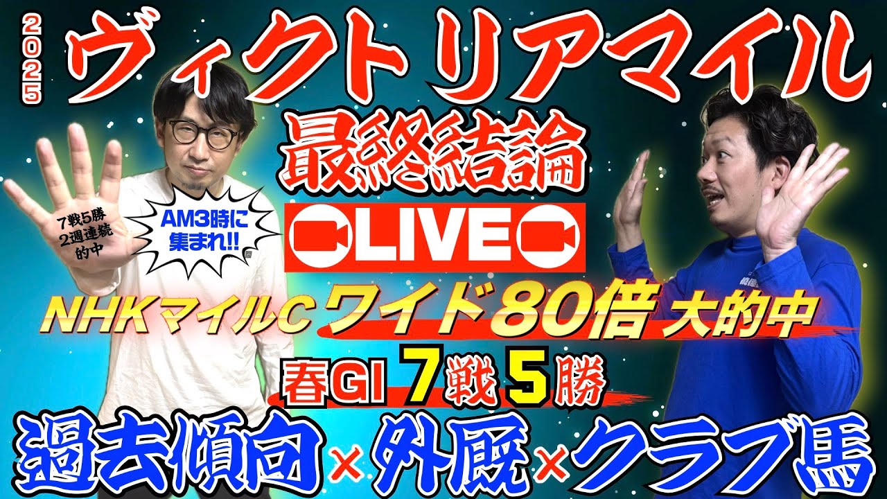2025年5月18日東京競馬場にて行われるヴィクトリアマイルGⅠの予想LIVEです。