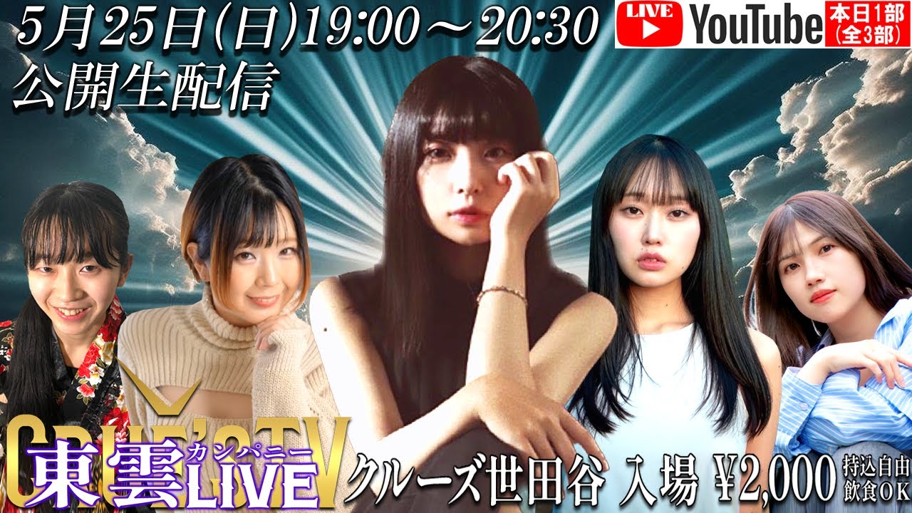 5月25日(日) 19:30生配信 #クルーズTV『東雲カンパニー LIVE TV 1部(全3部)』東雲れいか 古林南 空岡佑雨 樹咲早姫 蝶野香月 モデル タレント 女優 笑点 大喜利 1786