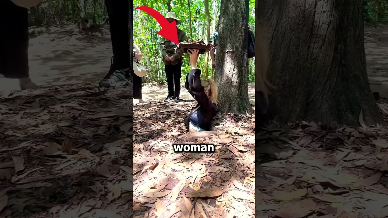 This woman squeezes into a tunnel that’s part of a massive 100-mile underground maze built by Vietnamese soldiers during the war. The tunnels had everything—even hospitals—and were made so tight that American troops couldn’t fit inside. Just make sure you don’t get stuck!