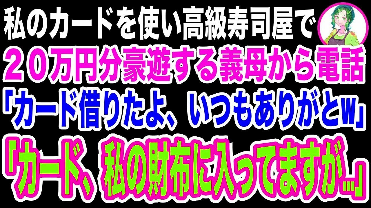 【スカッと】私のクレジットカードを勝手に使い高級寿司屋で20万円分豪遊する義母から電話「カード借りたから支払いよろしくw」私「カード、私の財布に入ってますが…」義母「え?」→衝撃の事実が…